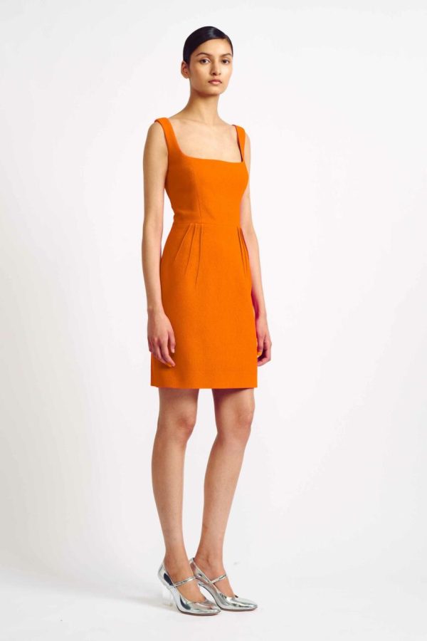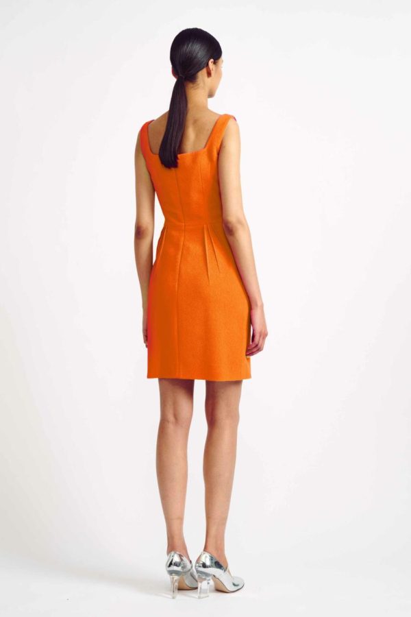 Crafted from luxurious double crepe fabric, the Salma Dress features a classic yet modern silhouette. Crafted from a vibrant orange double crepe, this tailored mini dress is sure to make a statement, perfect for any special occasion.